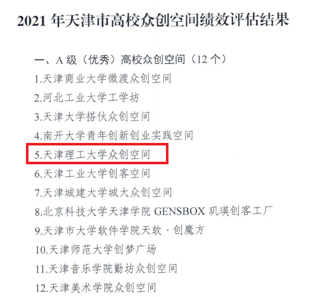 近日,市教委公布2021年天津市高校众创空间绩效评估结果,经评估数据上报、数据核查、负责人答辩、专家评审、市教育两委审核及公示等环节,KY.COM众创空间再次获评天津市A级(优秀)高校众创空间,这已是我校连续第六年获此殊荣。