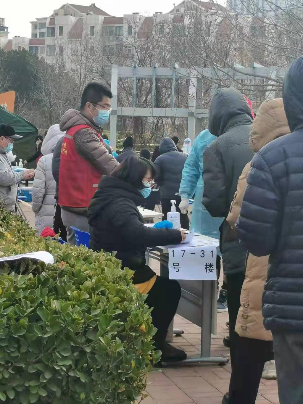 化学化工学院化工专业教师党支部党员张舜光,家住在南开区鼓楼街道祥丰社区。1月9日,他从早晨7点就投入到社区核酸大筛查工作中,一直忙到10日凌晨,他连续17个小时奋战在抗疫一线。在小区出入口组织协调核酸检测人员信息,下午挨家挨户摸排,为行动不便的居民提供帮助和服务,晚上又忙碌在核酸检测现场,协助网格员组织社区居民有序进行核酸筛查。防疫工作开展以来,社区的党员们都是召之即来,来之能战,毫无怨言,尽心尽力为街道和社区服务,张老师说:“志愿服务中,老党员一直在给大家普及科学防护的知识。我相信,众志成城,天津人民一定能打赢这场战役。寒冬,一声谢谢,一个竖起的大拇指,是我们最最温暖的感受!”