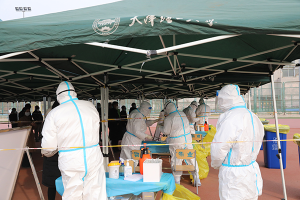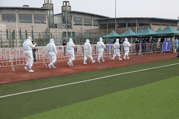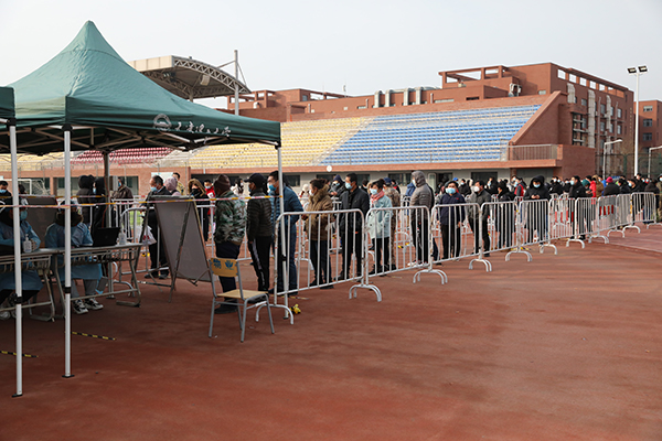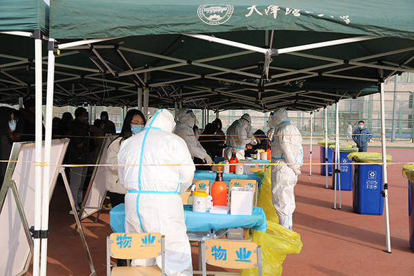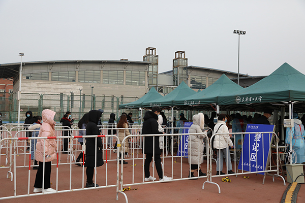 根据市区两级防控指挥部要求,学校从2022年1月9日7:00开始执行封闭管理,学校立即启动疫情防控应急预案,在南区体育场设立核酸检测点,迅速组织开展全员核酸检测,统筹人力物力和设备资源,争时间保效率、分步压茬推进全员核酸检测工作,确保安全有序高效完成。在封闭管理期间,学校全力做好在校师生员工饮食和各项生活服务保障。