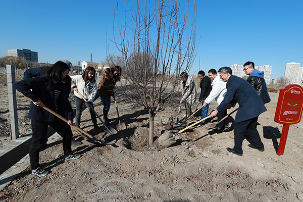 11月26日,由我校青年教师捐资筹建的“青骄林”在明理湖畔落成,首批种植5棵海棠树。党委教师工作部相关负责同志和青年教师代表共同为“青骄林”揭牌。