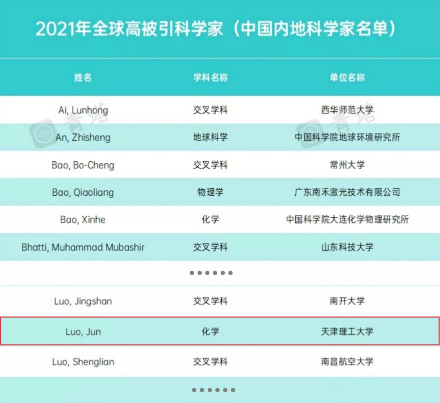 全球“高被引科学家”名单由Web of Science所属的科睿唯安发布。经过分析评估2010年-2020年期间被Web of Science收录的高被引论文,将科学家按照被引频次进行排名、统计、遴选而得出。入榜该名单,标志着科学家的研究成果在全世界发挥了重要的学术影响力,对所在学科领域的发展做出了卓越贡献。