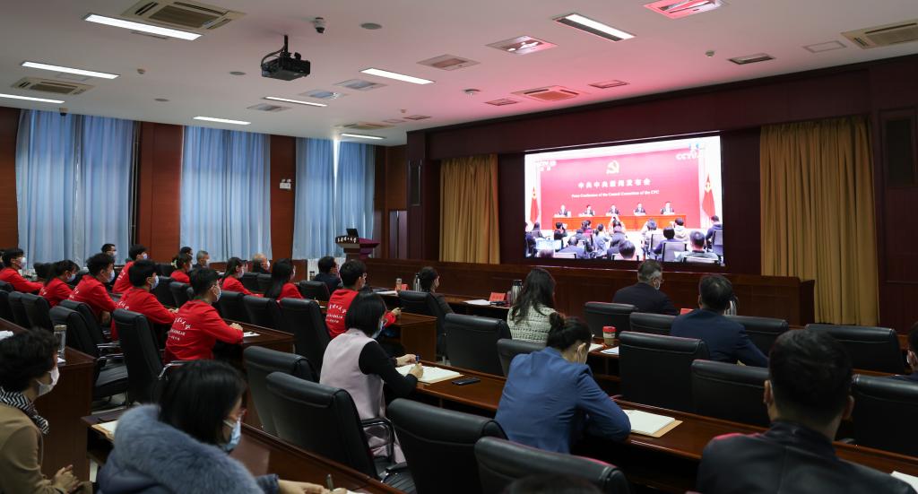 2021年11月12日上午10时,中共中央举行新闻发布会,中央宣传部分管日常工作的副部长王晓晖,中央政策研究室主任江金权,中央财经委员会办公室分管日常工作的副主任韩文秀,中央党史和文献研究院院长曲青山介绍党的十九届六中全会精神,并回答记者问题。校党委组织校院两级理论学习中心组成员、机关处级干部、思政课教师、青马学员代表及各基层党组织通过多种方式收听收看新闻发布会直播。