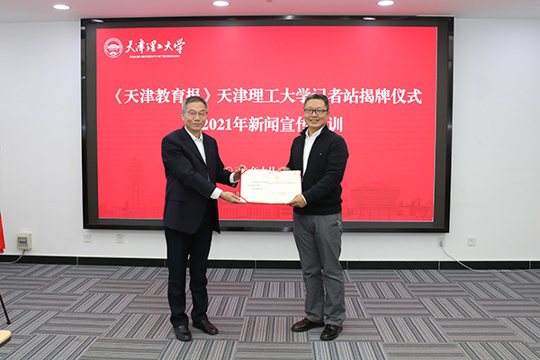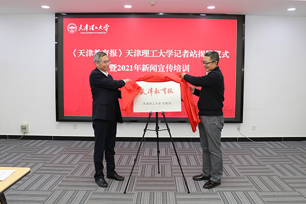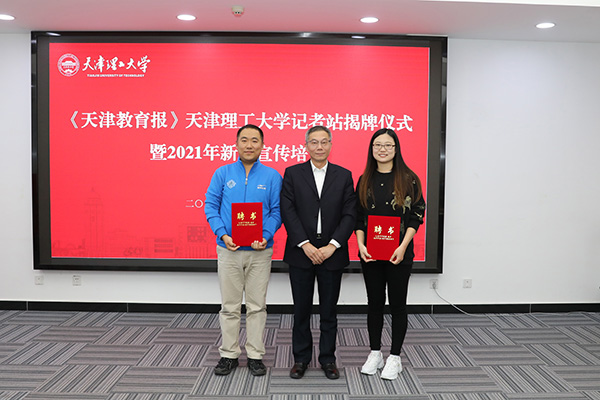 为深入贯彻落实习近平总书记关于宣传思想工作系列重要论述,切实承担起举旗帜、聚民心、育新人、兴文化、展形象的使命任务,持续做好新时代宣传思想工作,10月21日下午,我校举行《天津教育报》KY.COM记者站揭牌仪式暨2021年新闻宣传培训。天津教育报刊社社长、中国教育报天津记者站站长刘延军,天津教育报刊社记者刘佳、刘东岳,校党委副书记杜长有出席揭牌仪式,校党委宣传部、校网络安全与信息化办公室主要负责同志及基层党组织分管宣传思想工作负责人、通讯员、新闻中心学生记者代表50余人参加。校党委书记刘东志亲切接见了刘延军一行。