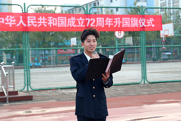 10月1日,学校在体育场举行庄严的升国旗仪式,庆祝中华人民共和国成立72周年。校领导杨庆新、杜长有、张继东出席,校党委学工部、校团委相关负责同志、各学院师生代表1400余人参加升国旗仪式。