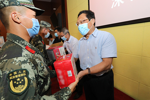 校领导慰问本科生军事技能训练承训官兵