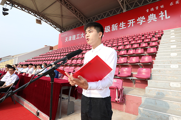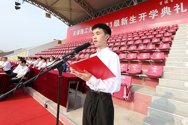 新生代表、电气工程与自动化学院本科生李韬与计算机科学与工程学院研究生张紫鑫,共同表达了进入天理校园所感受到的温暖与关怀,表示要时刻牢记“天理人”身份,勤学笃志、潜心钻研、持之以恒、锲而不舍,秉承“重德重能,求实求新”的校训精神,树立为祖国为人民永久奋斗、赤诚奉献的坚定理想,努力成为德智体美劳全面发展的社会主义建设者和接班人。