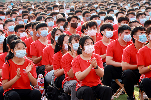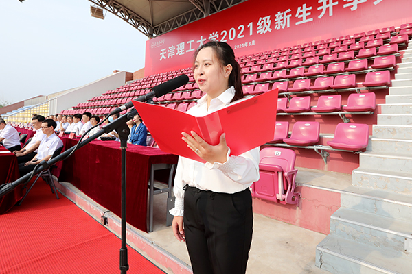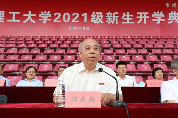 校党委副书记、校长杨庆新在开学典礼上向全体新生作形势政策教育开学第一课。他指出,2021年是一个伟大的年份,中国共产党成立100周年,开启了全面建设社会主义现代化国家新征程。在庆祝中国共产党成立100周年大会上,习近平总书记寄语中国青年:“未来属于青年,希望寄予青年。新时代的中国青年要以实现中华民族伟大复兴为己任,增强做中国人的志气、骨气、底气,不负时代,不负韶华,不负党和人民的殷切期望。”高扬的国旗下,“请党放心,强国有我”的铮铮誓言,铿锵有力、久久回荡。