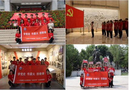 实践团成员以天津市觉悟社纪念馆为起点,感悟百年前一群新青年高举着马克思主义思想火炬,在风雨如晦的中国苦苦探寻民族复兴的前途。觉悟社门前,成员们面向党旗,高举右拳,重温入党誓词,在心中埋下信仰的种子。追寻着先人的足迹,实践团成员于七日内先后参观了吉鸿昌故居、梁启超故居、周邓纪念馆、中山公园——天津十五烈士纪念碑、“巍峨的丰碑”长征精神主题展、一二•九抗日运动纪念馆、平津战役纪念馆、中共中央北方局旧址、中共天津历史纪念馆、天津博物馆,集中领略了不同时期共产党人的革命史、斗争史和建设史,从中汲取新时代前行的精神动力。