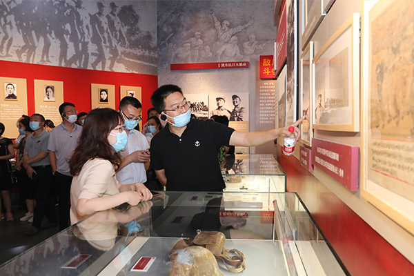 中心组成员认真观看革命图片和革命文物,仔细聆听讲解员讲解,深入了解珍贵革命文物背后的革命历史,领会革命文物承载的中国共产党团结带领中国人民浴血奋战、百折不挠的革命精神。大家纷纷表示,要紧紧围绕党史学习教育,不忘初心、牢记使命,赓续红色血脉,永远把伟大建党精神继承下去、发扬光大,不断强化责任担当,奋进新征程、建功新时代,为推动学校高质量发展做出自己的贡献。