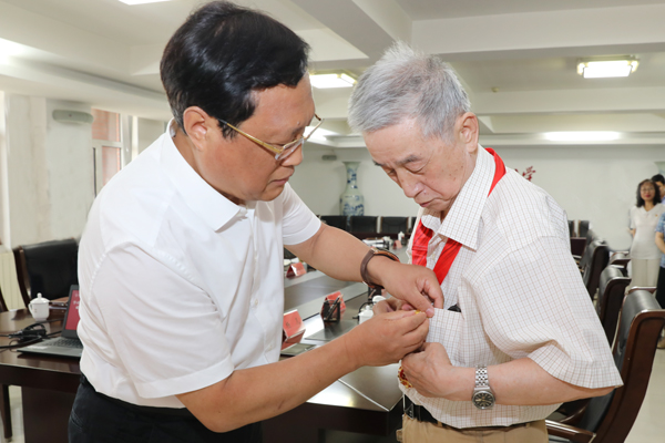 会后,校领导为参会师生佩戴了中国共产党成立100周年纪念徽章。