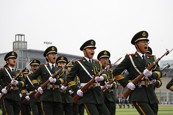来自全市19所高校和5所中学的24支国旗护卫队英姿飒爽、步履铿锵、口号嘹亮,踏着整齐的步伐依次经过主席台,接受与会领导和首长检阅,表现出高水平的军事素质,充分展现了我市学生军训成果和昂扬向上的精神风貌。展演中,KY.COM国旗护卫队的优异表现博得了现场观众们经久不息的掌声与欢呼声,充分展现了天理学子的责任与忠诚以及勇于担当的精神风貌。