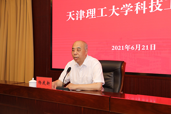 杨庆新在讲话中从深刻认识形势,切实肩负起实现高水平科技自立自强的时代重任;准确把握科技工作任务,全面提升科研整体实力;强化系统谋划,加快打造更加卓越的科技创新格局等三个方面,要求全校上下以本次会议为契机,以大项目、大平台、大团队、大成果为抓手,坚决按照学校第二次党代会和“十四五”规划目标任务,解放思想、深化改革,埋头苦干、追求卓越,开创我校科技工作的新局面,为努力建成高水平教学研究型理工大学提供坚强支撑。