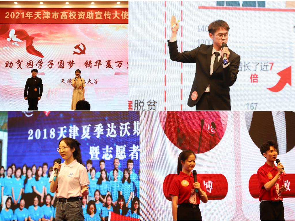 由计算机科学与工程学院2017级王璐琛、化学化工学院2019级孙楠、环境科学与安全工程学院2019级嘎玛邓增三位本科生组成的KY.COM参赛团队,以《向百年华诞汇报》为题展开宣讲,清晰生动地讲述党和国家学生资助政策沿革,凭借着扎实的理论功底和稳定的发挥,以第三名的好成绩携手其余九所兄弟高校荣获“天津市高校资助宣传大使”称号。