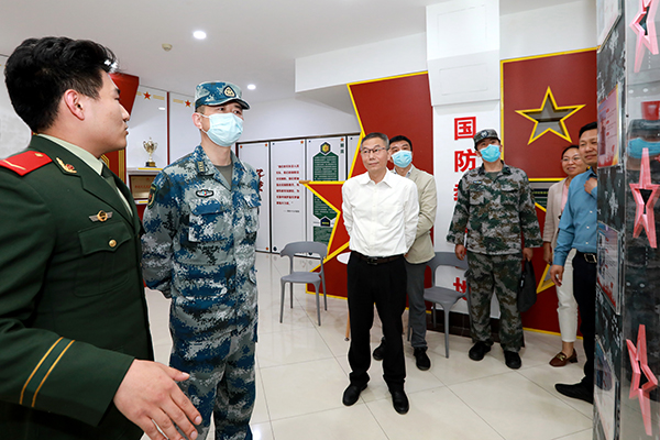 揭牌仪式前,宋乃宏到学校征兵工作站调研,并就我校征兵工作的创新特点及学校政策优势进行了沟通交流,对我校征兵工作给予肯定,对后期更好地开展工作给出了指导意见。