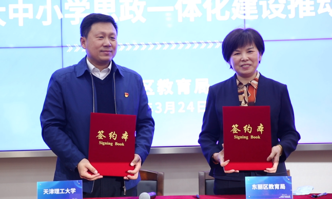 为深入学习贯彻落实习近平总书记关于思想政治工作的重要论述,进一步推进大中小学思政一体化建设,切实提高德育工作的针对性和实效性。3月24日,我校与东丽区教育局签署大中小学思政一体化共建协议,切实推动实践育人资源共建共享。天津市教委学生处处长杨明,东丽区教育局党委书记、局长黄佩玲出席仪式。