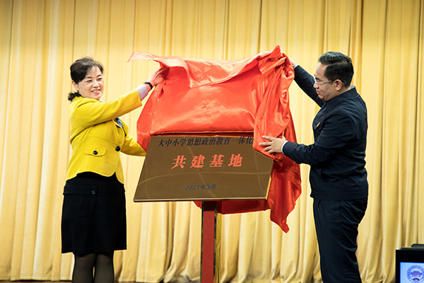 为深入学习贯彻习近平总书记在学校思想政治理论课教师座谈会上的重要讲话精神,深化大中小学思政教育一体化建设,我校与天津中学共建大中小学思想政治教育一体化建设基地于3月19日揭牌。我校党委副书记郭滇华、天津中学校长孙建昆出席揭牌仪式,两校相关负责同志、学生代表、家长代表400余人参加了活动。