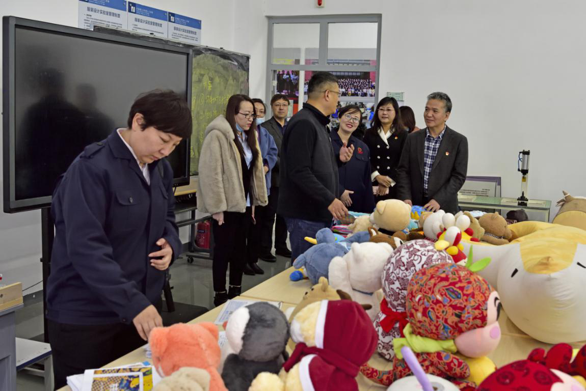 随后,荣程集团一行实地参观了我校听障大学生设计作品展,对教学环境、特色实验室等进行实地参观考察,为双方进一步合作共建奠定基础。