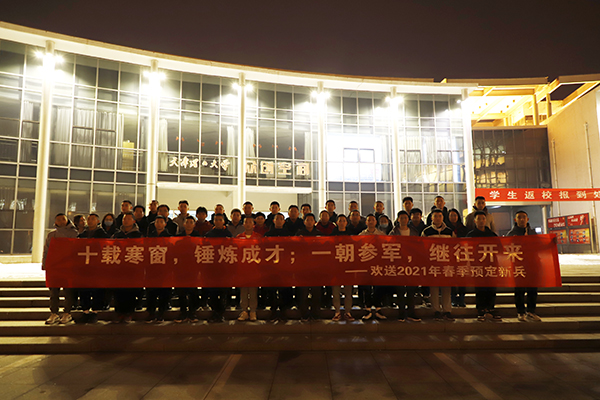 3月2日清晨,我校28名男性预定兵在大学生活动中心北广场集合,奔赴役前训练。3月1日晚,学校隆重举行了2021年春季应征入伍预定兵欢送大会,校领导刘东志、杨庆新、杜长有出席,征兵工作领导小组成员单位、各学院党委主要负责同志及学生工作负责同志参加。大会由校党委副书记杜长有主持。