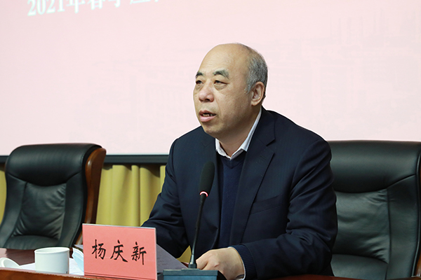 大会在雄壮的国歌声中拉开帷幕,校长杨庆新宣读了2021年春季应征入伍预定兵名单,代表学校向应征青年及其家属表达了崇高的敬意。学生辅导员黄绪以退役老兵、学长、征兵工作干部三重身份,分享了自己从军报国、励志求学和投身国防教育工作的心得体会。应征青年代表张稷尧代表全体预定兵同学表达了对母校和对家人的郑重承诺,表示坚决完成役前训练任务,早日成为一名合格军人,立志为国奉献、为部队争光。