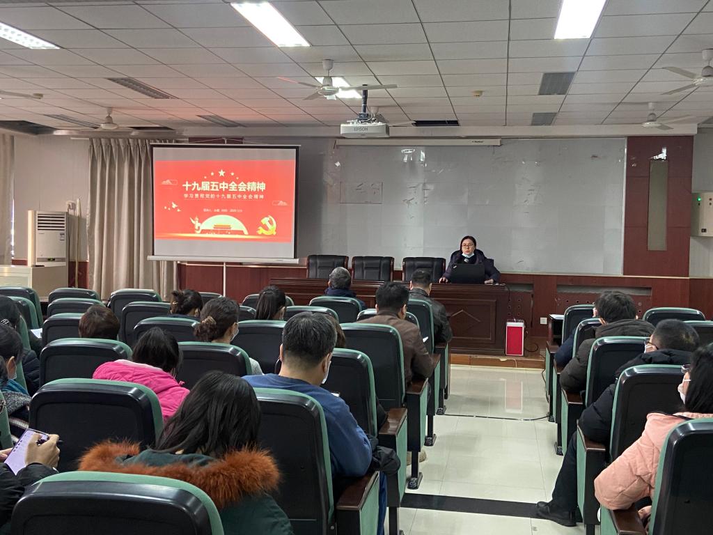 12月10日,在12号楼506会议室,材料学院党委书记从蓉、院长鲁统部面向学院党委全体党员、全体教职工进行了党的十九届五中全会精神领学宣讲。