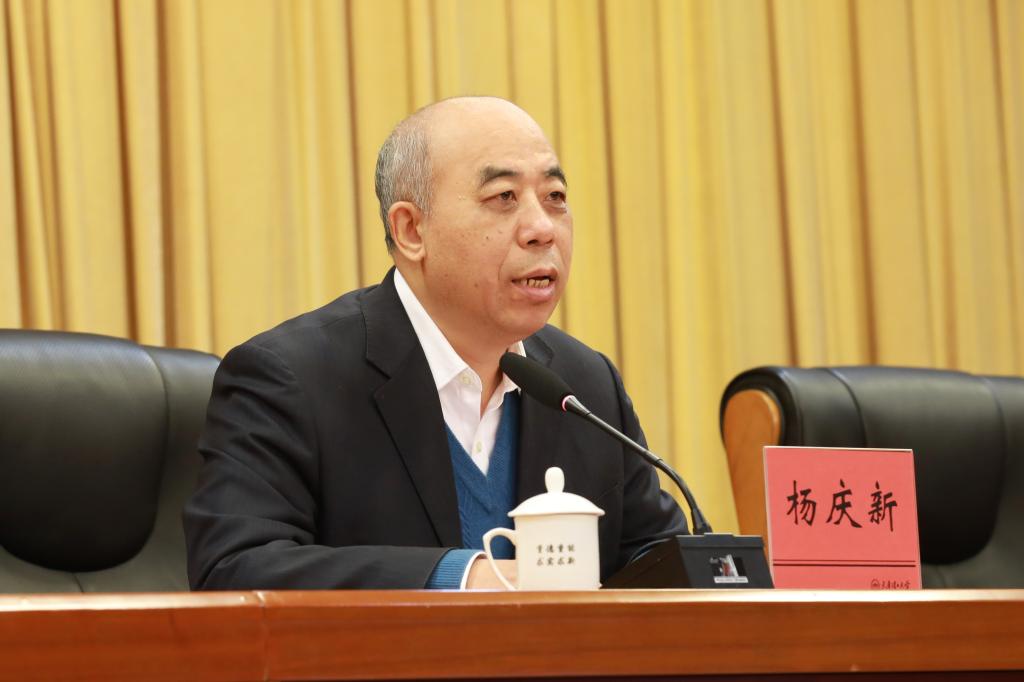 杨庆新代表学校对新聘教师岗前培训结业表示祝贺,并对2020年退休教师表达了感谢和祝福。他在讲话中指出,新教师是学校的希望,关系到学校未来的发展,新教师要牢记“为党育人、为国育才”的初心和使命,践行“学高为师、身正为范”的操守和风范,扎根理工大学,奋发、奋斗、奋进,在推动学校事业发展的实践中增长才干、建功立业。杨庆新深情表示,老教师是学校宝贵的财富,是学校实现宏伟目标的重要保证,希望退休老教师继续关心和支持学校的发展,在教育教学、科学研究、学科建设等方面,分享经验智慧,做青年师生成长的引路人、做天理故事的宣传员、做天理精神的守护者。杨庆新强调,荣休仪式是对老教师的感谢和肯定,更是对青年教师和学生的嘱托和激励,也是学校尊师重教优良传统、以人为本工作理念的生动体现,学校党委将继续关心关注退休教师的生活,积极创造条件让大家享受退休时光,拥有天理人的归属感、获得感和幸福感。