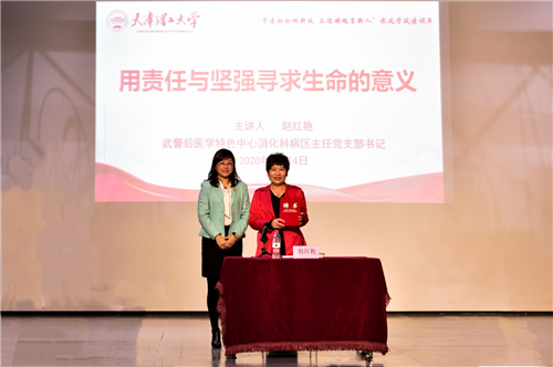 报告中,赵红艳分享了她作为一名党员为保障患者和战友的生命安全和身体健康而舍小家顾大家,坚守岗位、日夜奋战在抗击“非典”第一线的点点滴滴;讲述自己如何与病魔抗争,如何在日常行医过程中用爱心、耐心、细心,赢得病患们的信任和称赞的故事。赵老师经历种种磨难仍初心不改,在数年如一日服务患者和社会的过程中,抒写了新时代党员身残志坚的阳光人生,为大家诠释了人生路上如何用责任和坚强寻求生命的意义。朴实的话语,不平凡的经历,感染着现场的每一个人,使我院师生深刻体会到了只要不服输、去奋斗、去拼搏,人人都可以成为主宰命运的坚强者,并更加坚定了在当前阶段要勤于学习、敏于求知,不断丰富学识、增长见识和练就过硬本领的信念。会后,学院党总支为赵红艳老师颁发“励志成长导师”聘书。