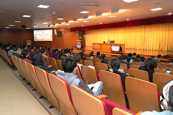 随后,中共天津市委党校孙云龙教授作了题为《深入开展四史学习教育,不断增强思想自觉政治自觉行动自觉》的专题报告。孙教授以时间为主轴,依托翔实的历史资料和大量的研究成果,围绕中国问题的历史传承、中国革命的艰苦卓绝、社会主义的曲折探索、改革开放的伟大实践、中华民族的伟大复兴等五个专题重温了中国共产党成立99年来艰苦卓绝的光辉历程和新中国成立71年来波澜壮阔的伟大成就,阐释了中国共产党人为中国人民谋幸福、为中华民族谋复兴的初心使命。