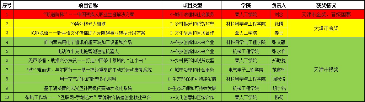 近日,由团市委、市委教育工委、市科技局、市教委、市人社局、市科协市学联共同举办的2020年“挑战杯”天津市大学生创业计划竞赛决赛落下帷幕。我校共推荐10支参赛队伍,并全部晋级天津市终审决赛。经过大赛组委会专家评委的严格评选,我校共有三支队伍荣获“挑战杯”天津市大学生创业计划竞赛金奖,其余七支队伍均荣获银奖。其中,“‘职道阶梯’——中国残疾人职业生涯解决方案”项目晋级全国总决赛。