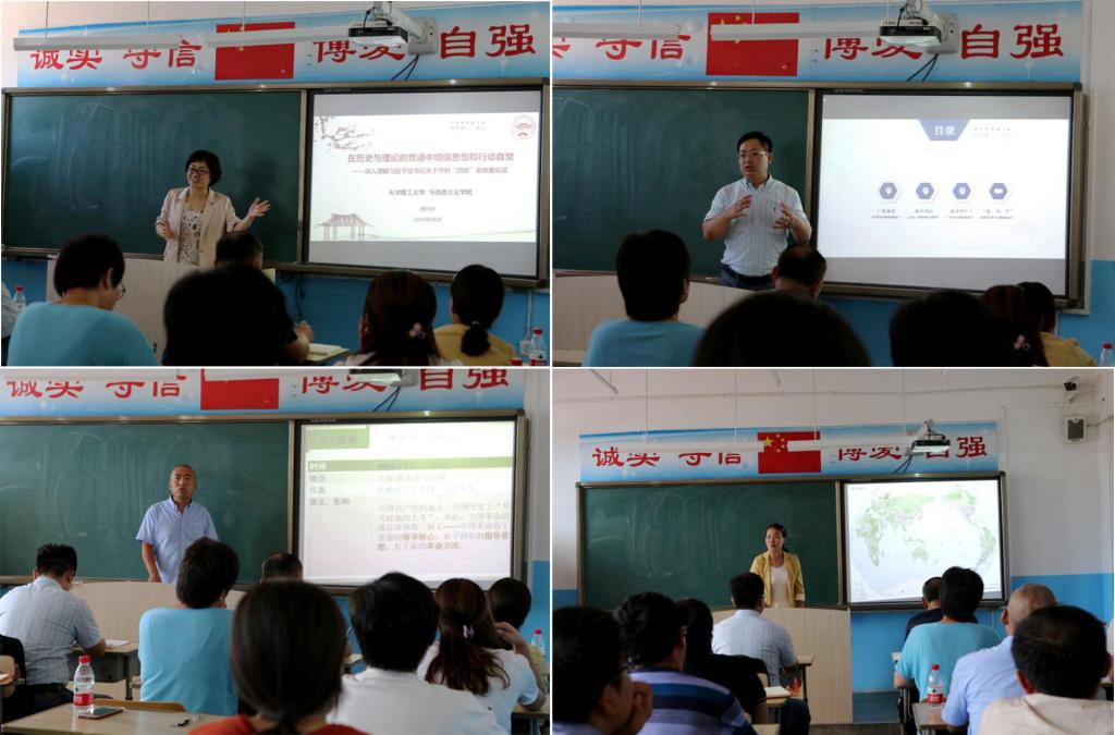 在当天下午的教学展示环节中,我校思政教师代表甄文东、晋利珍和下窝头镇的教师代表吴宝明、刘爽分别结合“四史”教育内容,作了教学展示。双方教师代表针对展示内容开展了深入交流。