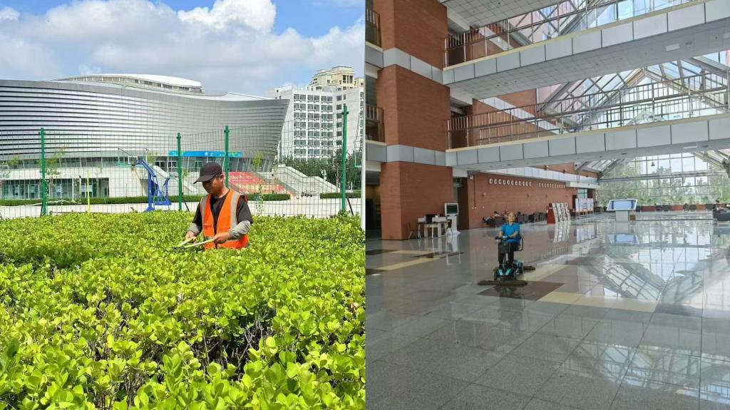 校园物业服务持续改进提升。保洁人员坚守岗位,利用假期清理校园卫生死角;工作人员完成阅览室内卫生间下水管及踩踏板改造,进行学生公寓、食堂等区域部分电梯维护维保,努力营造良好学习生活环境。对校园绿化修葺和现有植物养护,对树木、灌木进行全面修剪,加强了对植物病虫害的监测和防治。绿化养护过程中,后勤处与基建处密切配合有序衔接。