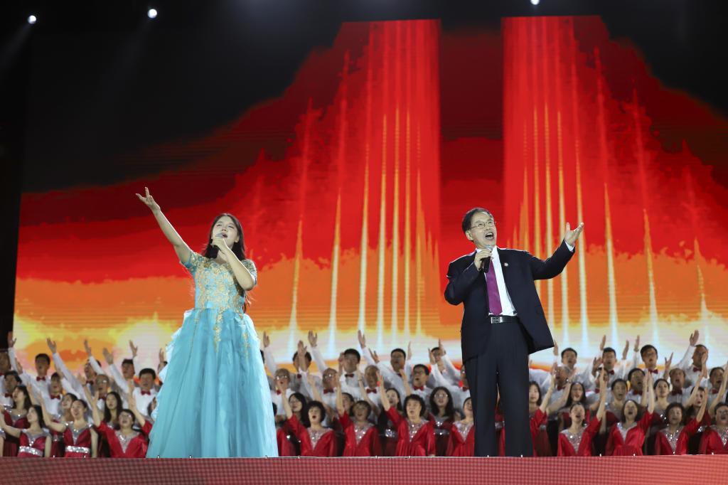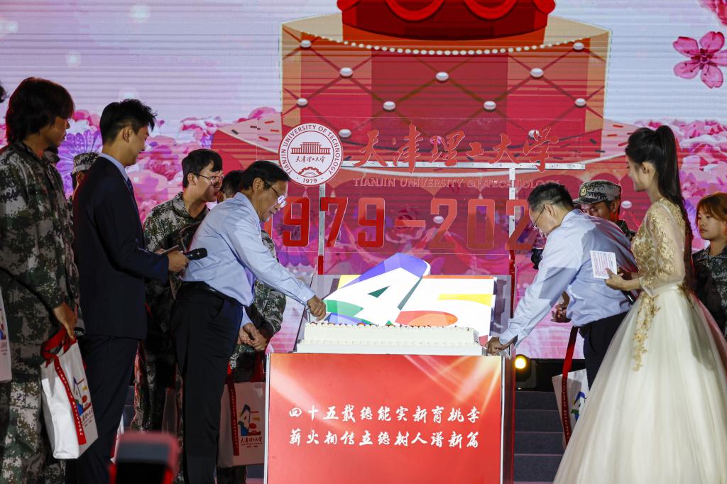 歌曲《祖国不会忘记》《津门理工颂》由在职教工代表、退休教师、校友等200余人以及现场全体新生共同完成,台上台下全体师生大合唱,震撼全场,充分展现了建校45年来一代又一代天理师生爱党爱国、爱校荣校,勇担时代使命、争做时代先锋,为国家富强、民族复兴而努力奋斗的青春斗志。