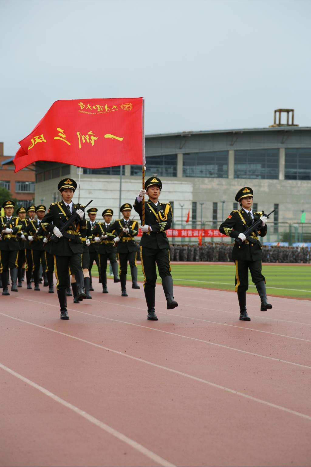 在分列式表演环节,由“一训三风”分列式和各学院组成的19支受阅方队以飒爽的英姿、嘹亮的口号、整齐的步伐依次经过主席台,接受与会领导的检阅。