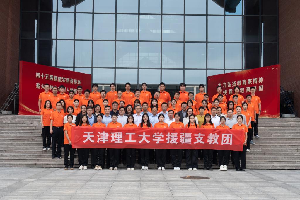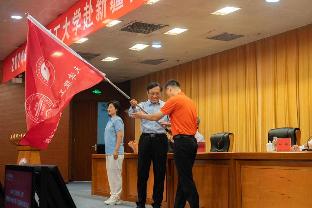 刘东志向实习支教团授旗,向支教团师生致以美好祝愿并提出三点希望。一是坚定信念、牢记使命。大学生实习支教工作是进行教育对口支援的重要举措,实习支教既为同学们报效祖国提供了广阔的空间,也为锻炼成才搭建了广阔平台,同学们要在支教历程中锤炼优秀品质,擦亮“天理名片”。二是敢于担当、甘于奉献。支教团师生要弘扬“天理精神”,以国家通用语言文字教育促进社会稳定,以交往交流交融促进民族团结,以文化润疆铸牢中华民族共同体意识,以技术技能培养助力经济社会发展。三是平安健康,载誉而归。支教团师生要涵养进取品格,展现青春风采,坚决服从组织安排,牢固树立安全意识,遵守纪律、令行禁止,厚植家国情怀,尊重民族差异,积极宣讲中华优秀传统文化,让青春之花绽放在祖国最需要的地方。