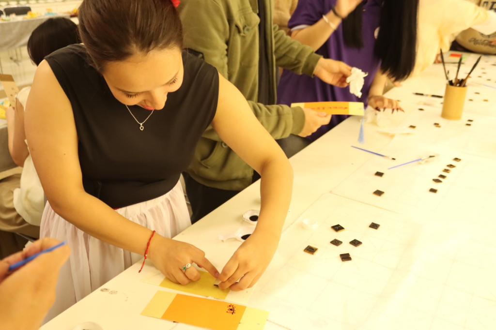 此次联欢会共分为才艺展示、双语微课及游戏互动等环节。在才艺表演环节,中外学生载歌载舞,激情演绎,拉美舞蹈与中国舞蹈中外交融,将气氛瞬间活跃起来。在双语微课上,主持人用中英文介绍了中秋佳节的由来,带领大家体验用活字印刷术制作书签,沉浸式感受中华优秀传统文化的魅力。在游戏互动环节,中外学生们积极参与中国诗词数字体验和投壶比赛,通过飞花令、诗词接龙等形式,领略传统诗词的魅力和节日趣味。活动最后,师生们以一杯清茶,共邀明月,庆祝中秋。