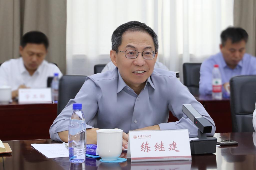 练继建对天津师范大学的热情接待和精心安排表示衷心感谢,介绍了学校在人才培养、学科建设、科技创新、服务社会、教师队伍建设等方面的特色亮点,以及未来的发展思路,表示希望与天津师范大学等兄弟高校建立更加广泛、深入的合作关系,共同推动人才培养和教育事业发展,为服务教育强国、教育强市建设共同作出更大贡献。