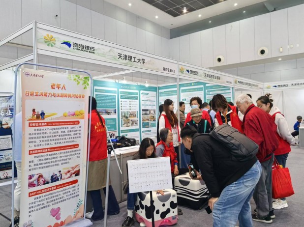 10月25日,2024天津(国际)养老服务业博览会暨渤海银行·2024京津冀都市重阳博览会在梅江会展中心开幕。社会发展学院老年学系依托市民政局养老人才共建基地,在公益展区首次亮相,为市民带来了专业化的养老服务。