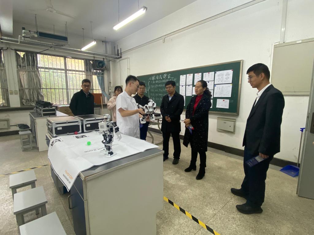 专家组一行先后参观了先进制造实验室、机器人工程实验室等多个科普实验室。在先进制造实验室,教师代表详细介绍了实验室如何通过数控机床、机器人装备等先进设备,将复杂的制造过程转化为直观生动的科普演示,让参观者近距离感受智能制造的魅力。专家组也深入考察了工业机器人、人形机器人、手术机器人、混联加工机器人、智能移载平台等智能装备的科普价值和应用情况。