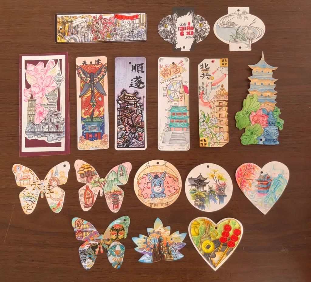 本次大赛受到学院学生的积极参与,学生们亲手绘制了独一无二的创意书签,其灵感来源于古文化街、天津之眼、大雁塔等地标性建筑以及陕北说书、京剧等非物质文化遗产,构思巧妙,制作精美,充分展现出学院学子的设计水平和创新能力。