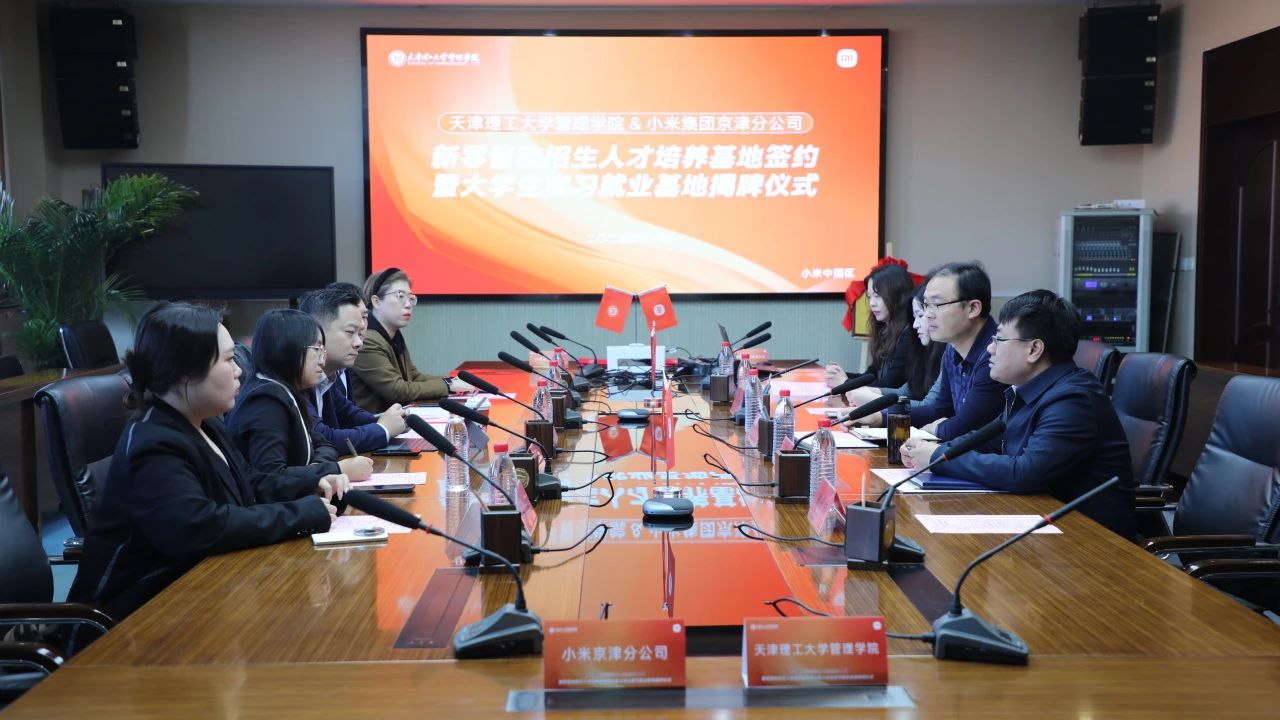 学院相关负责同志从学科建设、师资队伍、人才培养、实习就业等方面介绍了学院的基本情况,希望双方通过产学研合作、实习实践、就业推荐等形式,不断加强校企协同育人实践平台建设,持续推动校企双方高质量发展。小米科技有限责任公司京津分公司相关负责人围绕公司的发展历程、业务情况、发展战略、人才需求等方面介绍了公司概况。校企双方就实践基地建设、人才培养模式、校企合作机制等问题展开讨论。随后,双方共同签署共建协议并走进学院进行参观交流。