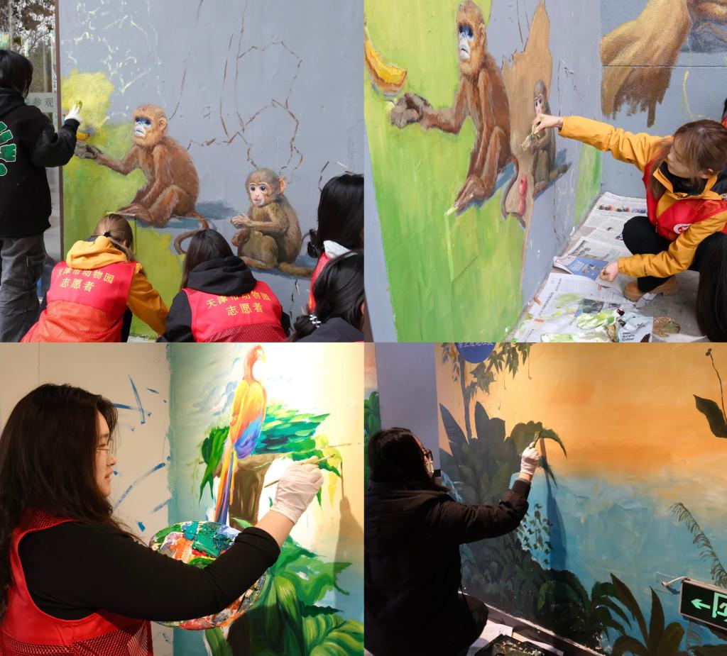 近日,艺术学院青年志愿者协会应邀参与天津市动物园墙体彩绘美化项目。