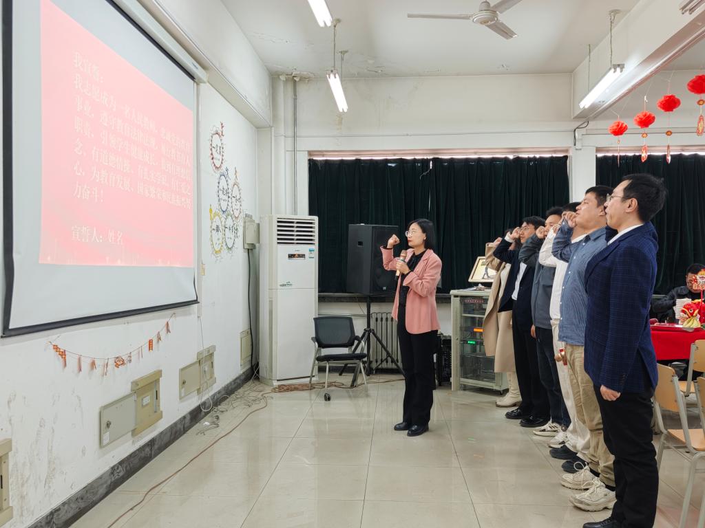 学院主要负责人总结了2024年学院在党建引领、教学改革、科学研究、学科建设和国际交流等方面获得的丰硕成果,并对全体教师的辛勤付出表示衷心感谢。学院党委相关负责同志带领新入职教师进行庄严宣誓,铮铮誓言彰显了青年教师的奋进担当。