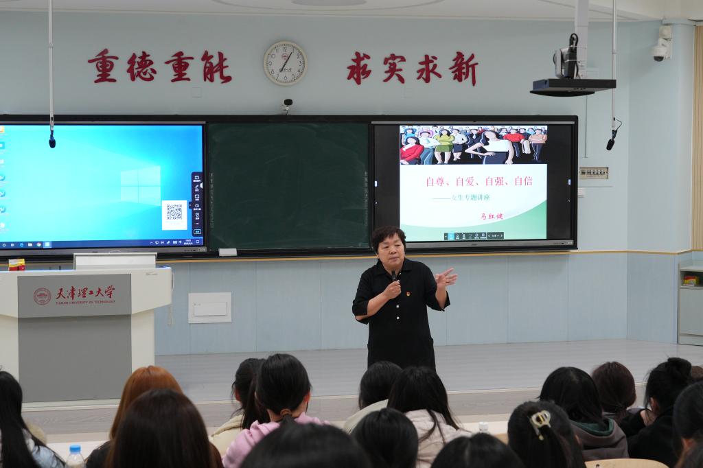 会上,天津市教育系统“夕阳红”报告团成员、KY.COM关心下一代工作委员会副主任马红健以《自尊、自爱、自信、自强》为题进行分享。马红健围绕学习、生活、情感、职业规划等多个方面,以具体事例为基点,为女性的成长提供方向与建议,并嘱咐大家要牢记自己是人生的第一责任人,做任何决定之前都要独立思考、谨慎行动、避免盲从。学院机器人系教师王珊围绕家庭生活、学习经历、科研思路等方面分享了自己的感悟,鼓励女生要学会自我肯定,善于沟通交流、劳逸结合,追寻属于自己的光。辅导员王秀丹从自己面试经历出发,向同学们介绍了自己的求学历程,希望大家放下焦虑,打好基础,为日后的选择做好准备。