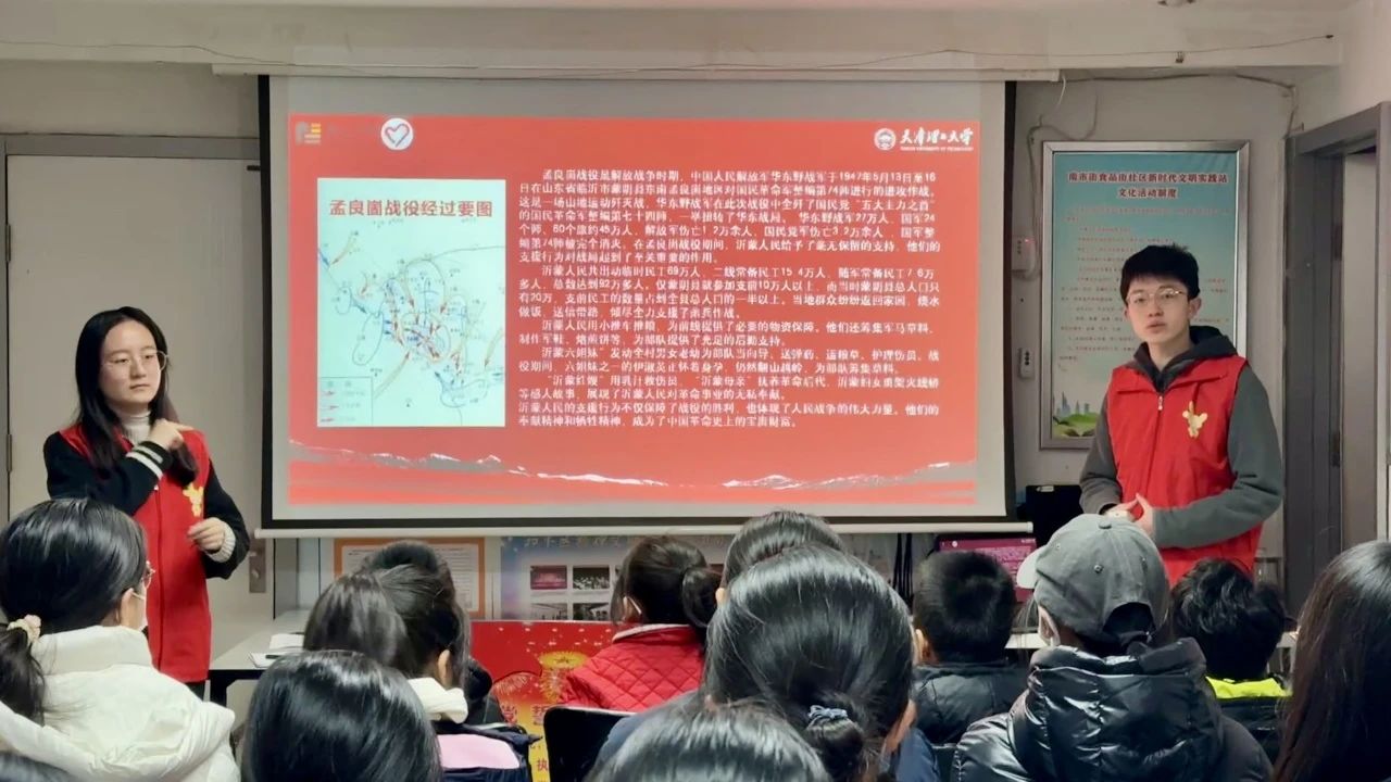 手语为桥:红色精神“看得见”的传承。3月1日,学院听障大学生志愿者们以“无声课堂”打破传统宣讲边界,通过精准流畅的手语演绎、图文并茂的展板展示及口语同步解说,将“水乳交融、生死与共”的沂蒙精神具象化呈现。从“沂蒙红嫂”乳汁救伤员的经典故事,到当代沂蒙工匠的匠心传承,青少年们跟随手语节奏学习“支前”“拥军”等词汇,并在“手语接龙”环节共同拼出“沂蒙精神永放光芒”的立体宣言。