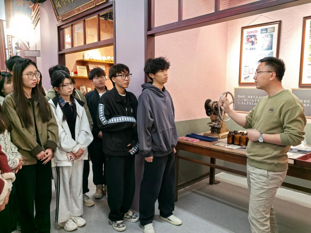 在企业生产车间与研发中心,师生一行跟随企业工作人员深入了解我国医药产业的发展历程、核心技术攻关成果及企业在服务民生健康中的使命担当。随后,学院专业教师凌宏雷以“一粒药的诞生”为主线,结合传统中药大蜜丸制备流程与现代片剂生产技术,开展沉浸式实景教学。他以行业关注的“缓释制剂技术壁垒”为例,剖析我国制药领域面临的挑战。他的讲解引发学生对专业价值的深度思考。