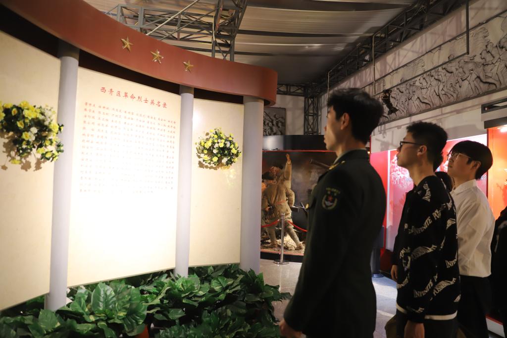 随后,全体人员走进烈士纪念馆,在讲解工作人员的讲解下,共同回顾了那段波澜壮阔的历史。馆内120余幅图片生动地展现了烽火连天的岁月;通过沉浸式的战役仿真场景体验,学生们亲身感受了先烈们的英勇与坚韧;穿过“天津战役知识长廊”,陵园结合大量高科技手段生动再现了战役的辉煌瞬间。