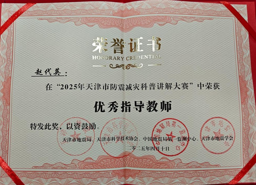 近日,2025年天津市防震减灾科普讲解大赛暨第九届全国防震减灾科普讲解大赛选拔赛结果公布。环境科学与安全工程学院获优秀组织奖、作品《地震次生灾害:危化品的泄漏与应对》获优秀奖、教师赵代英荣获优秀指导教师。