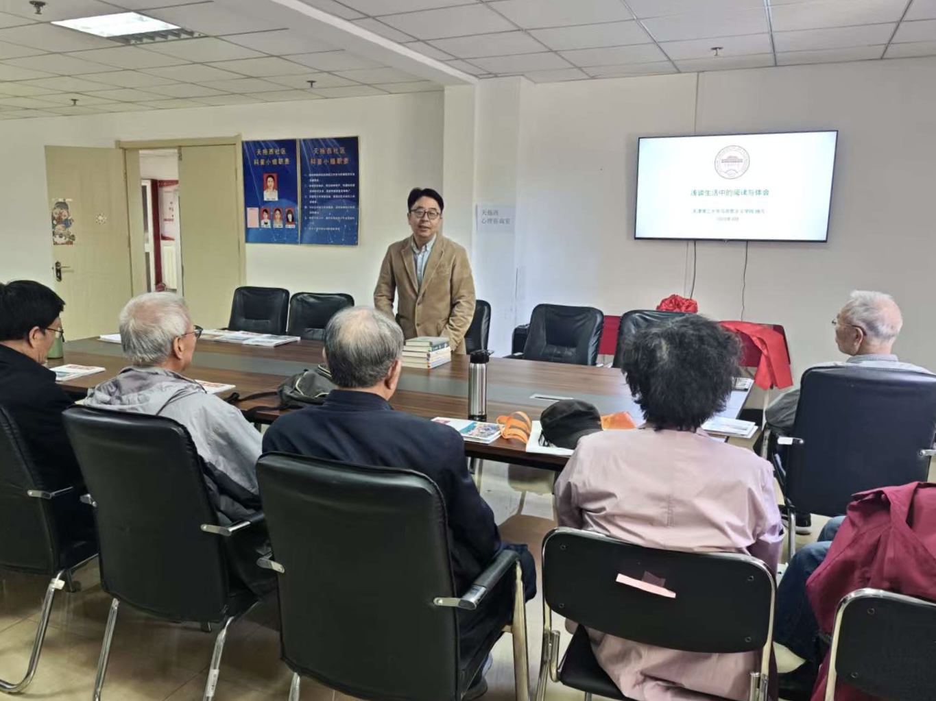 学院师生面向社区居民开展理论宣讲与读书分享。学院思政课教师杨凡作了《五百年来谁著史》的读书报告。居民们纷纷表示,深刻感受到社区治理在不断进步,精神生活和物质生活也在不断发展。
