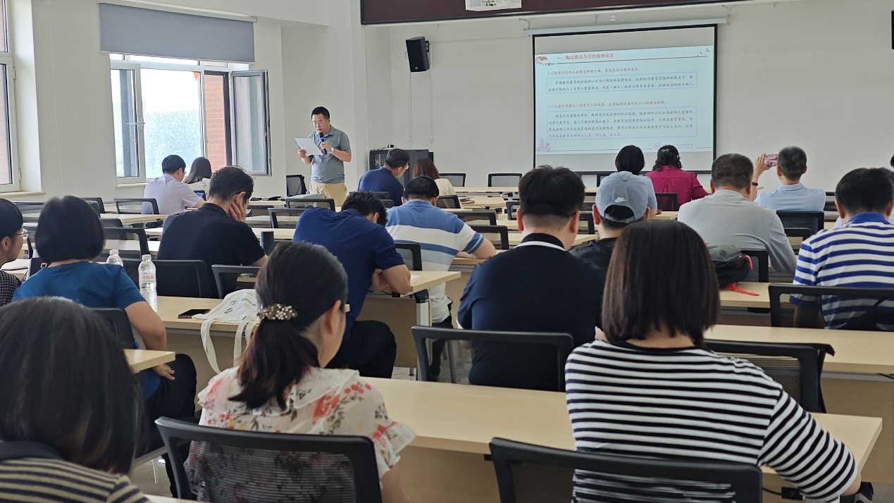 谷海青以“涵养新时代教师‘言为士则、行为世范的道德情操’”为题,围绕陶冶德高为范的精神追求、锤炼知行合一的师德师风等三方面展开,号召全体教师大力弘扬教育家精神,以德高为范之道铸造师德之魂,塑造高尚的精神追求,并发挥校训、校风、教风和学风的文化传承作用,在教学活动中践行以德为先的育人理念,在言传身教中不断提升学生的道德素养。
