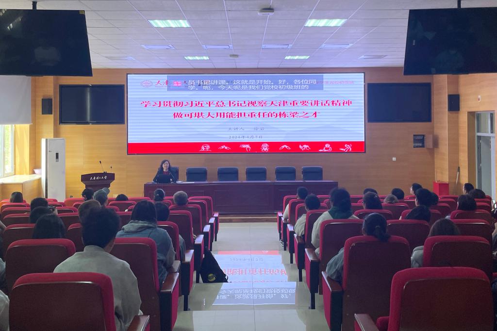 学院党总支书记以《学习贯彻习近平总书记视察天津重要讲话精神 做可堪大用能担重任的栋梁之才》为题作了专题报告。她围绕天津、学校、学院、个人四个层面,带领大家深刻领会把握习近平总书记对天津工作的总体要求,全面学习贯彻习近平总书记对天津工作提出的“四个善作善成”重要要求,希望广大同学志存高远、筑牢信念关,勤学苦练、过好学业关,奋发蹈厉、修炼本领关,担当作为、扎实行动关,牢记殷殷嘱托,奋力谱写中国式现代化天津篇章。