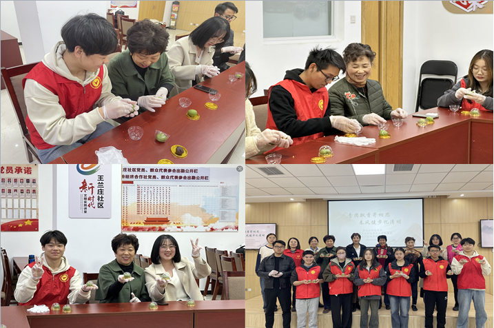 志愿者们为社区居民讲述清明节的起源与传说故事,了解节日演变历程,弘扬中华优秀传统文化。宣讲后,志愿者们与居民共同制作青团,大家纷纷戴上手套,将揉好的糯米粉按出凹槽,放上馅料、收口,制作完成了透着艾草清香的青团。志愿者们还与居民来到南湖公园踏青,感受春日的美好。